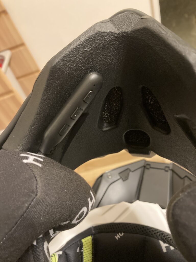なぜかというと、このヘッドセットがジェット用のモデルのためフルフェイスに付けると帽体が邪魔になって操作しずらいんすよね~。